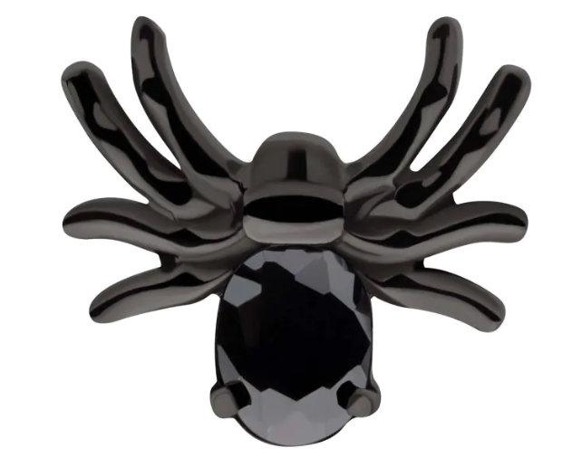 Black PVD Titanium Threadless Prong Set Oval Gem Spider Top. This Threadless Top is with 25g durable Titanium Pin designed to be practical and easy to use. Fitting all sizes of pins and bases in our threadless body jewelry line. Pin Size: 0.45mm x 4.7mm.